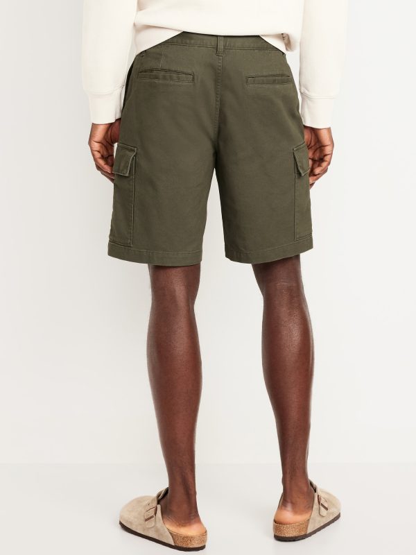 Lived-In Cargo Shorts — 9-inch inseam: button front, belt loops, zip fly, diagonal front pockets, back welt pockets, flap-cargo pockets at thigh, #695513