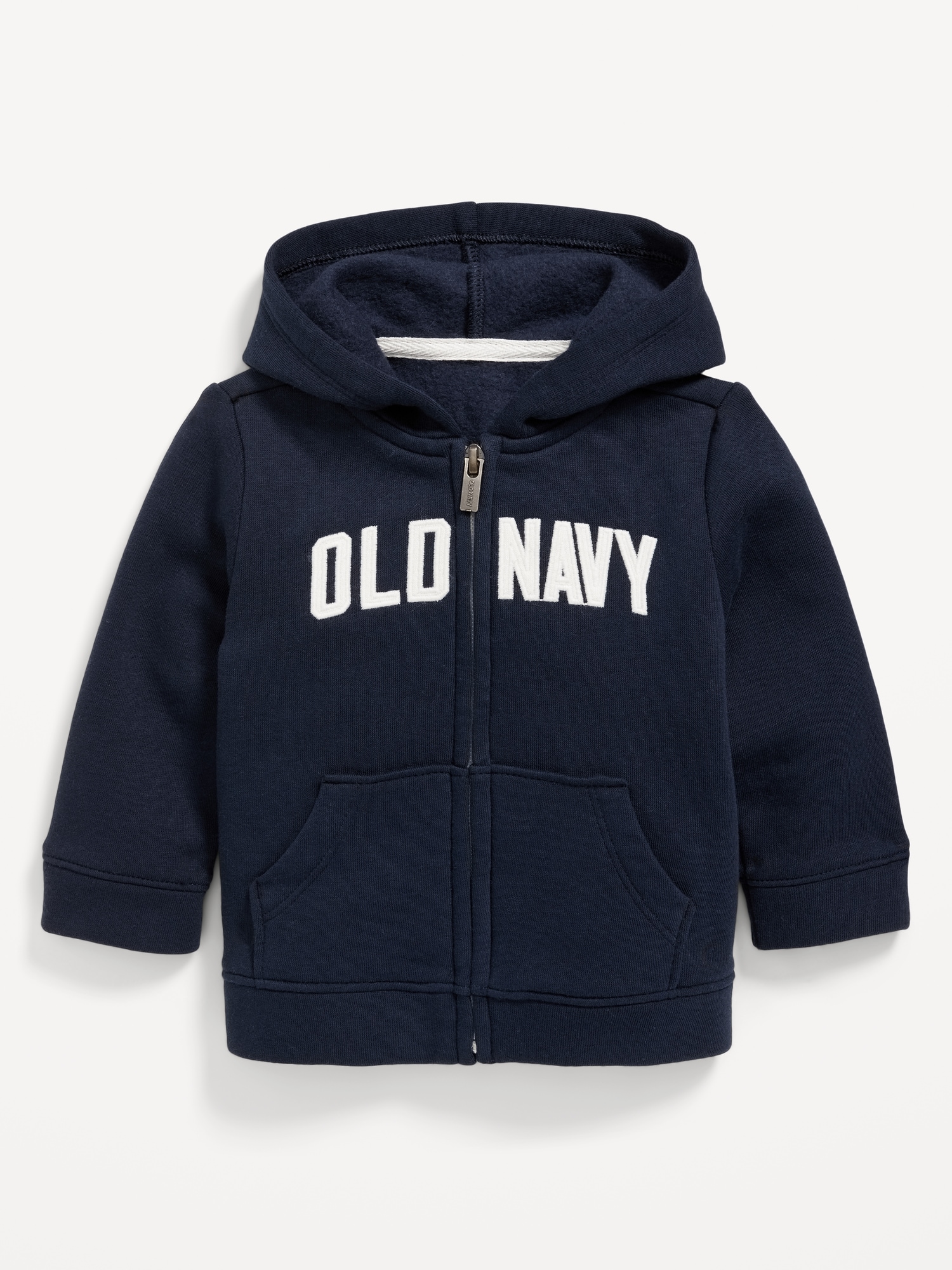 Logo-Graphic Zip Hoodie for Baby: built-in hood, long sleeves, full-length zipper, logo graphic at front, hand warming pockets, banded hem, available exclusively online and at old navy outlet, #693976