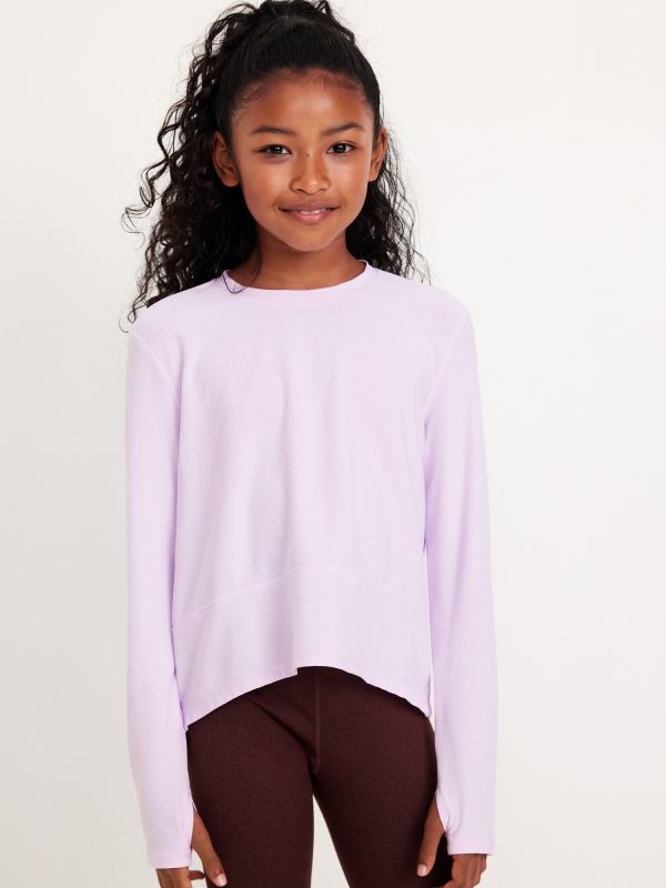Long-Sleeve Curved-Hem Performance Top for Girls