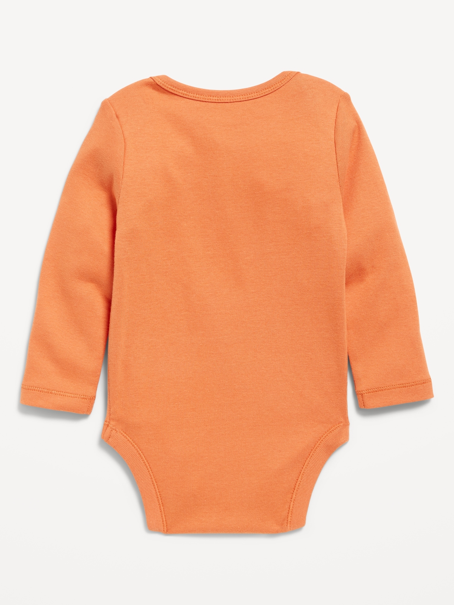 Long-Sleeve Graphic Bodysuit for Baby: envelope neckline, ruching along neckline, long sleeves, snaps along inseam, all-over print, #806284