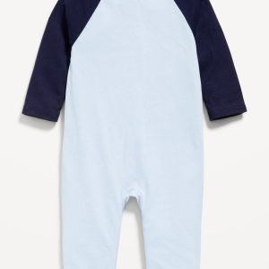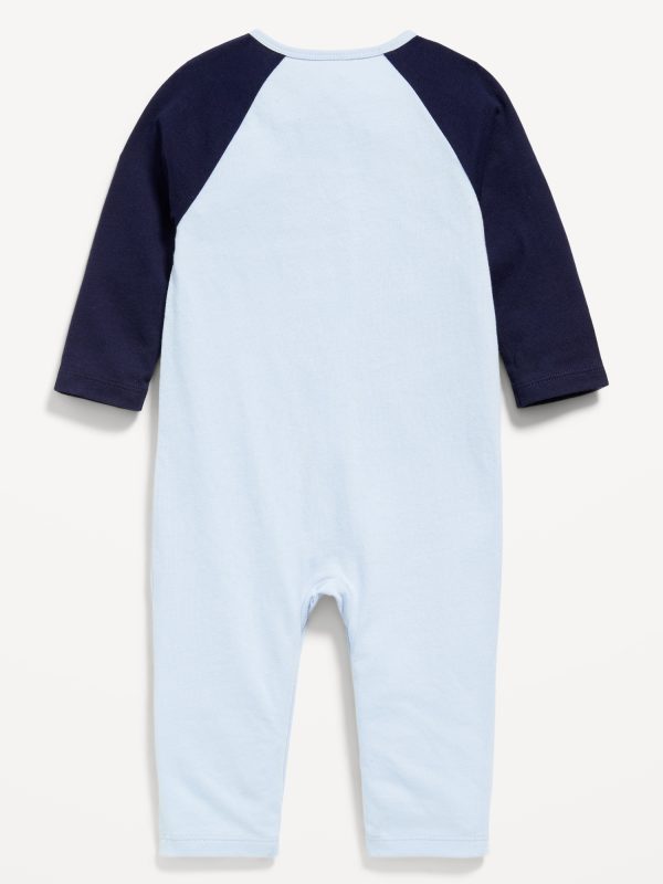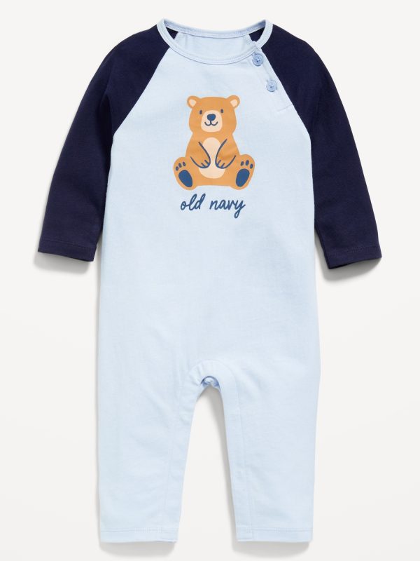 Long-Sleeve Logo-Graphic One-Piece for Baby: crew neck, long sleeves, decorative button placket at front, logo graphic at center, hidden snaps at inseam, available exclusively online and at old navy outlet stores., #806275
