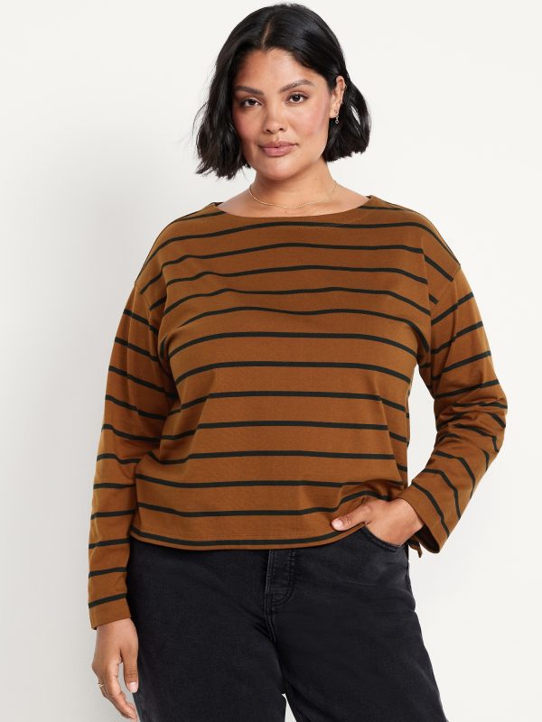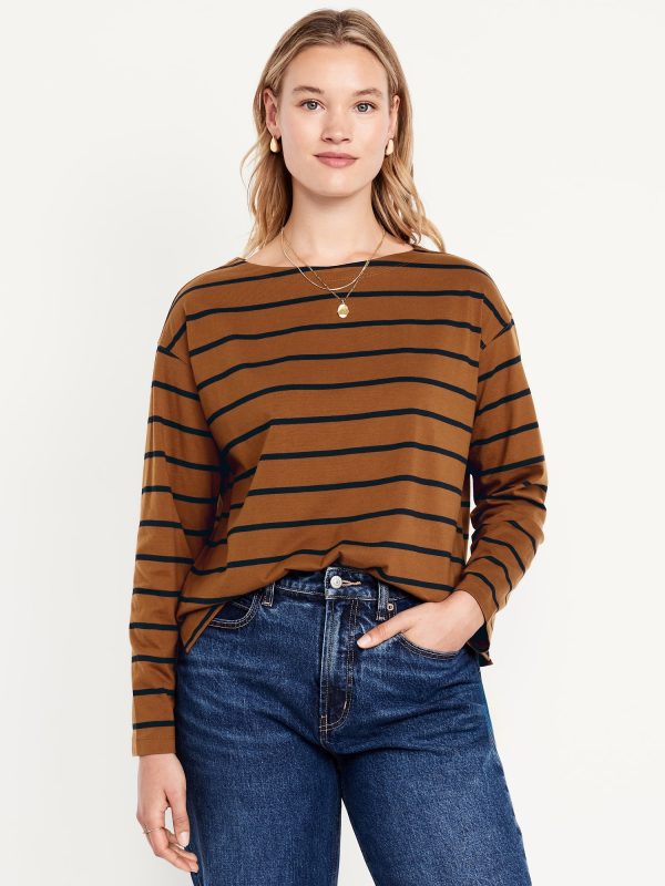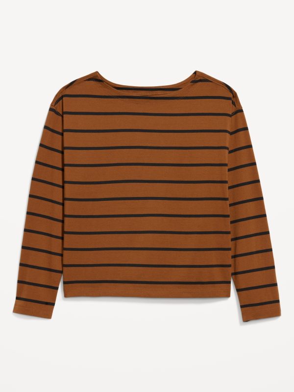 Long-Sleeve Mariner Loose T-Shirt: boat neck, long sleeves, striped print, #794582