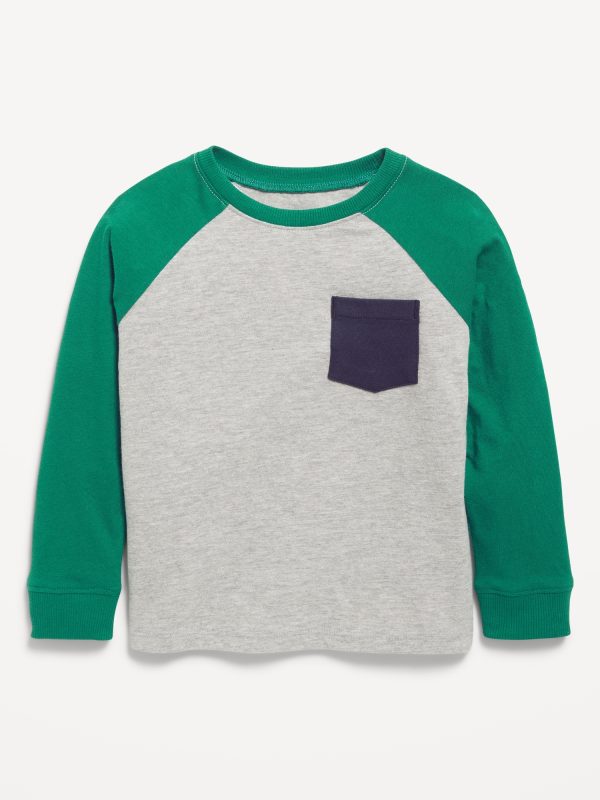 Long-Sleeve Pocket T-Shirt for Toddler Boys: Mix Match Go Productcrew neck, long sleeves, patch pocket at chest, color block, #829254
