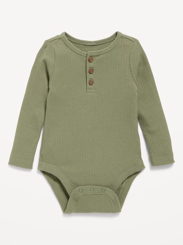 Long-Sleeve Ribbed Henley Bodysuit for Baby