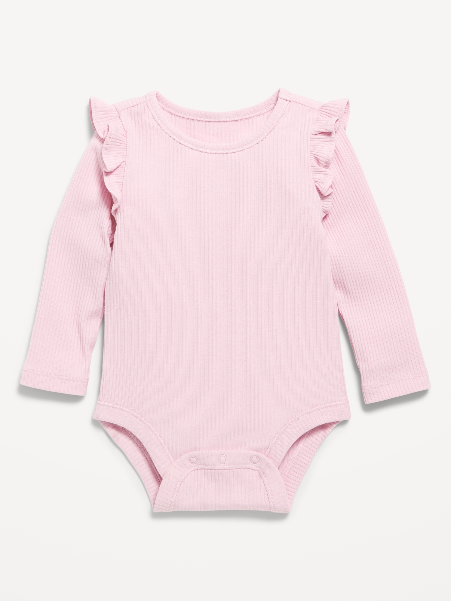 Long-Sleeve Ribbed Ruffle-Trim Bodysuit for Baby