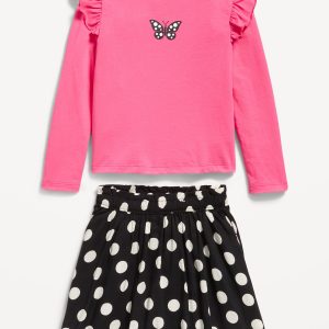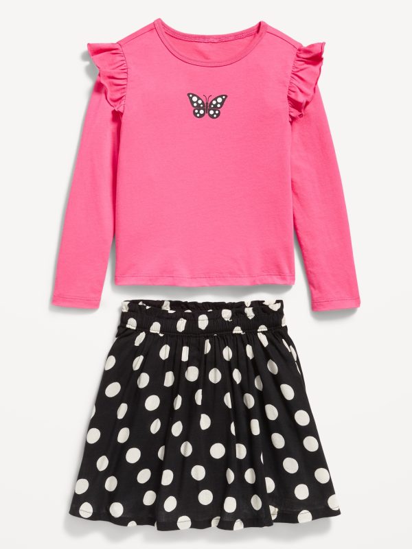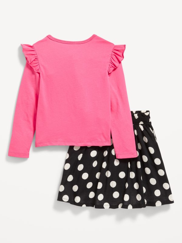 Long-Sleeve Ruffle T-Shirt and Skirt Set for Toddler Girls