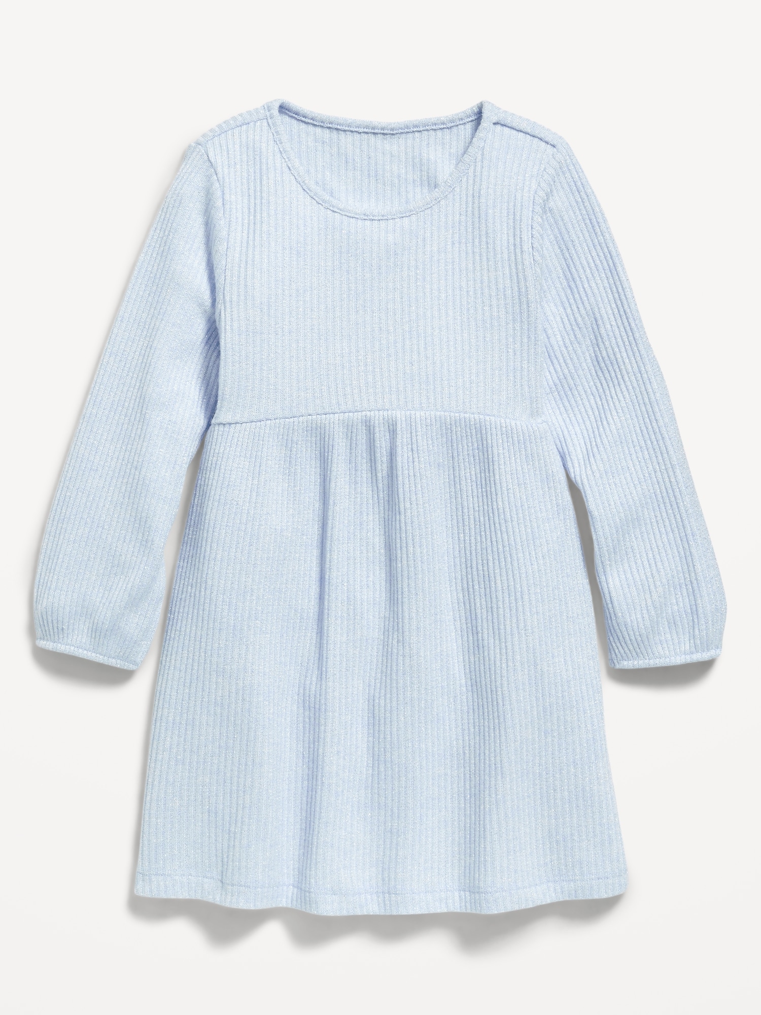 Long-Sleeve Shiny Ribbed Dress for Toddler Girls