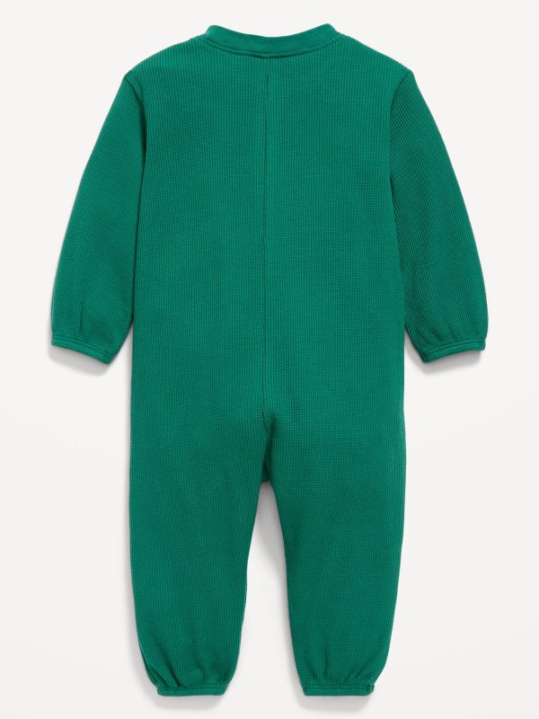 Long-Sleeve Waffle-Knit Henley One-Piece for Baby