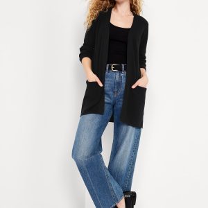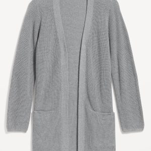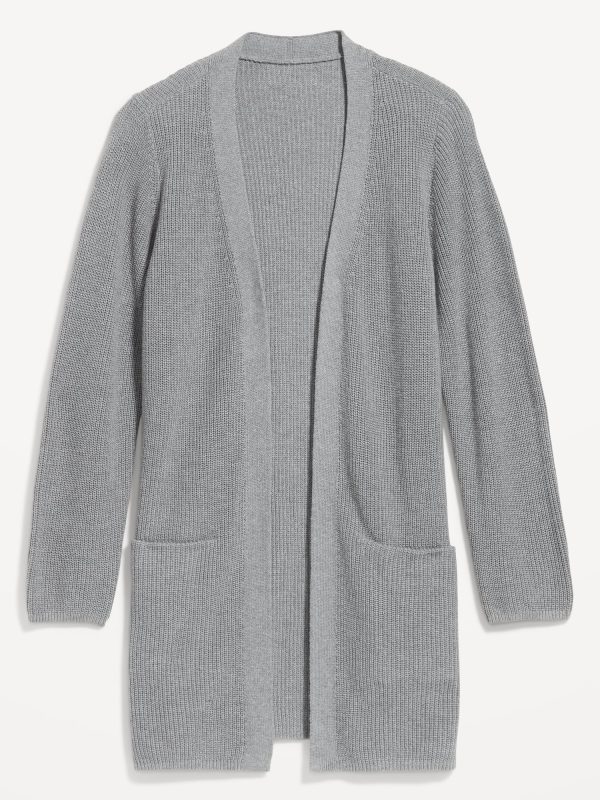 Longline Open-Front Sweater: long sleeves, patch pockets, vented sides, #784424