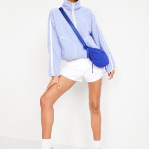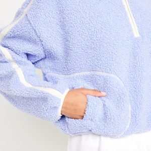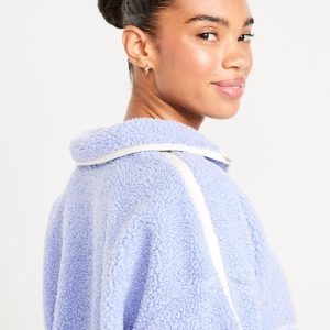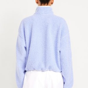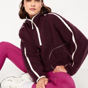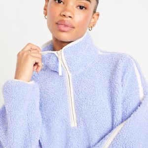Loose Sherpa Quarter-Zip Pullover: quarter-zip funnel neck, drop-shoulder sleeves, front pockets, contrasting trim, elastic cuffs and hem, #784870