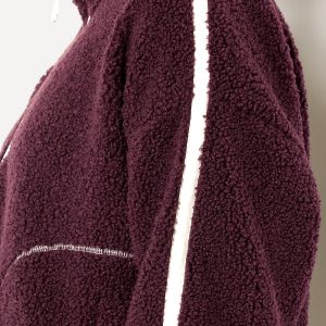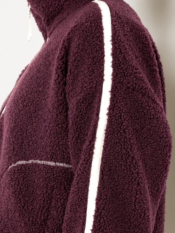 Loose Sherpa Quarter-Zip Pullover: quarter-zip funnel neck, drop-shoulder sleeves, front pockets, contrasting trim, elastic cuffs and hem, #784870