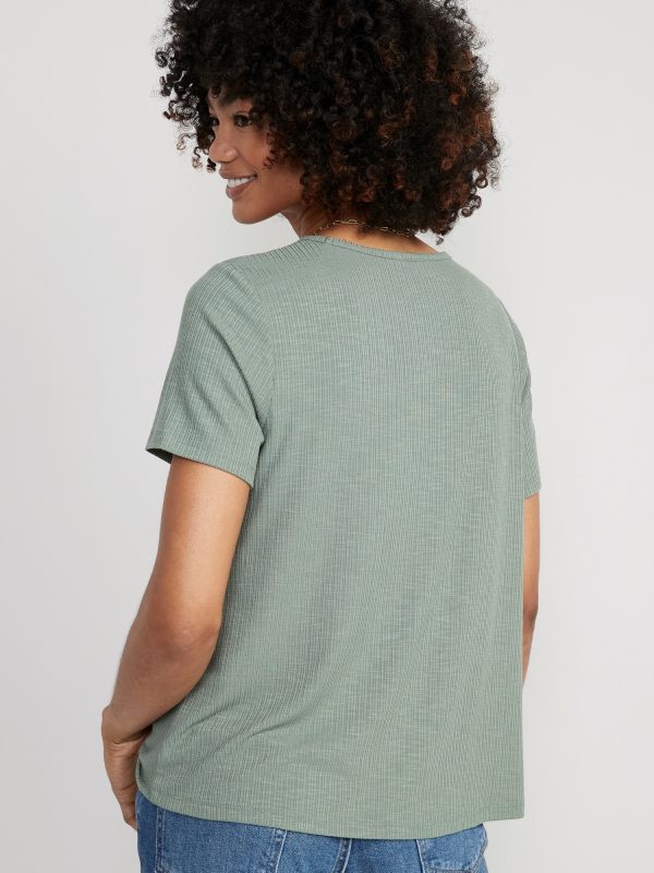 Luxe Ribbed Slub-Knit T-Shirt: A draped, flawless fit that’s ultra soft.crew neck, short sleeves, floral print, #693045