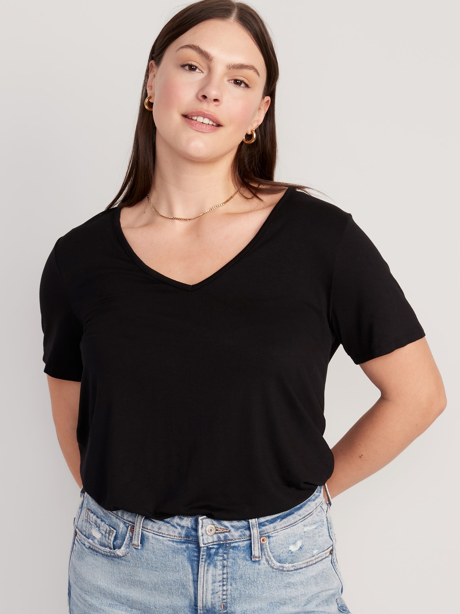 Luxe V-Neck T-Shirt: A draped, flawless fit that’s ultra soft.v-neck, short sleeves, #796584