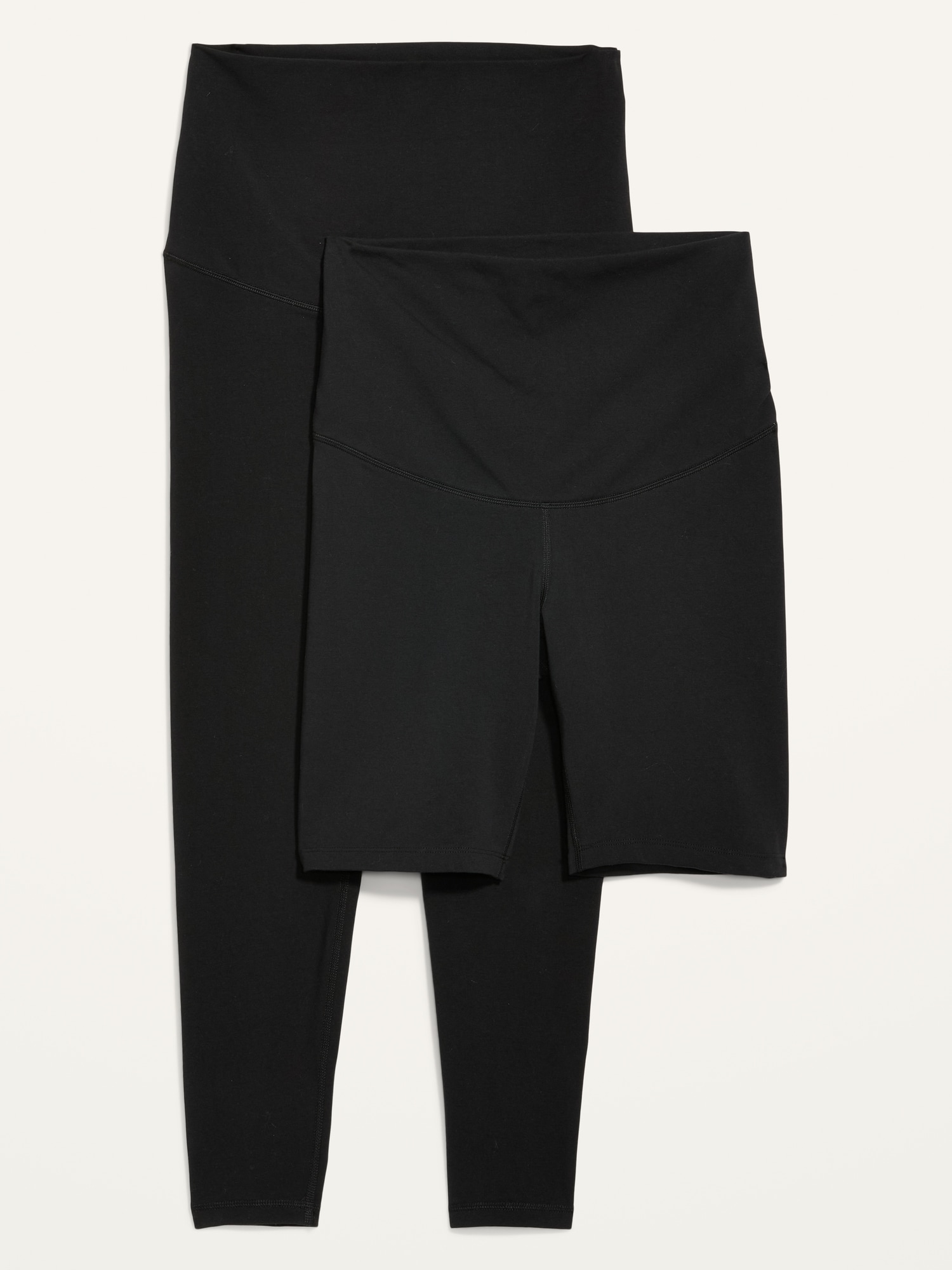 Maternity 2-Pack Rollover-Waist PowerChill 7/8-Length Leggings & Biker Shorts