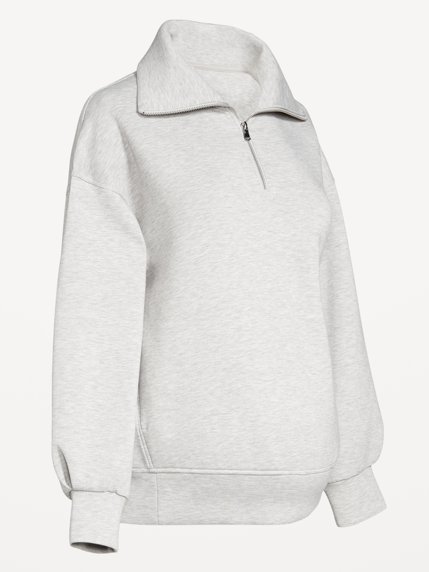 Maternity Bounce Fleece Half-Zip Pullover: Featuring Bounce Fleece. A smooth, cooling finish that feels good and looks chic everywhere you go.half-zip funnel neck, long drop-shoulder sleeves with pleated cuffs, on-seam pockets, easy pullover style, breathable, #826400