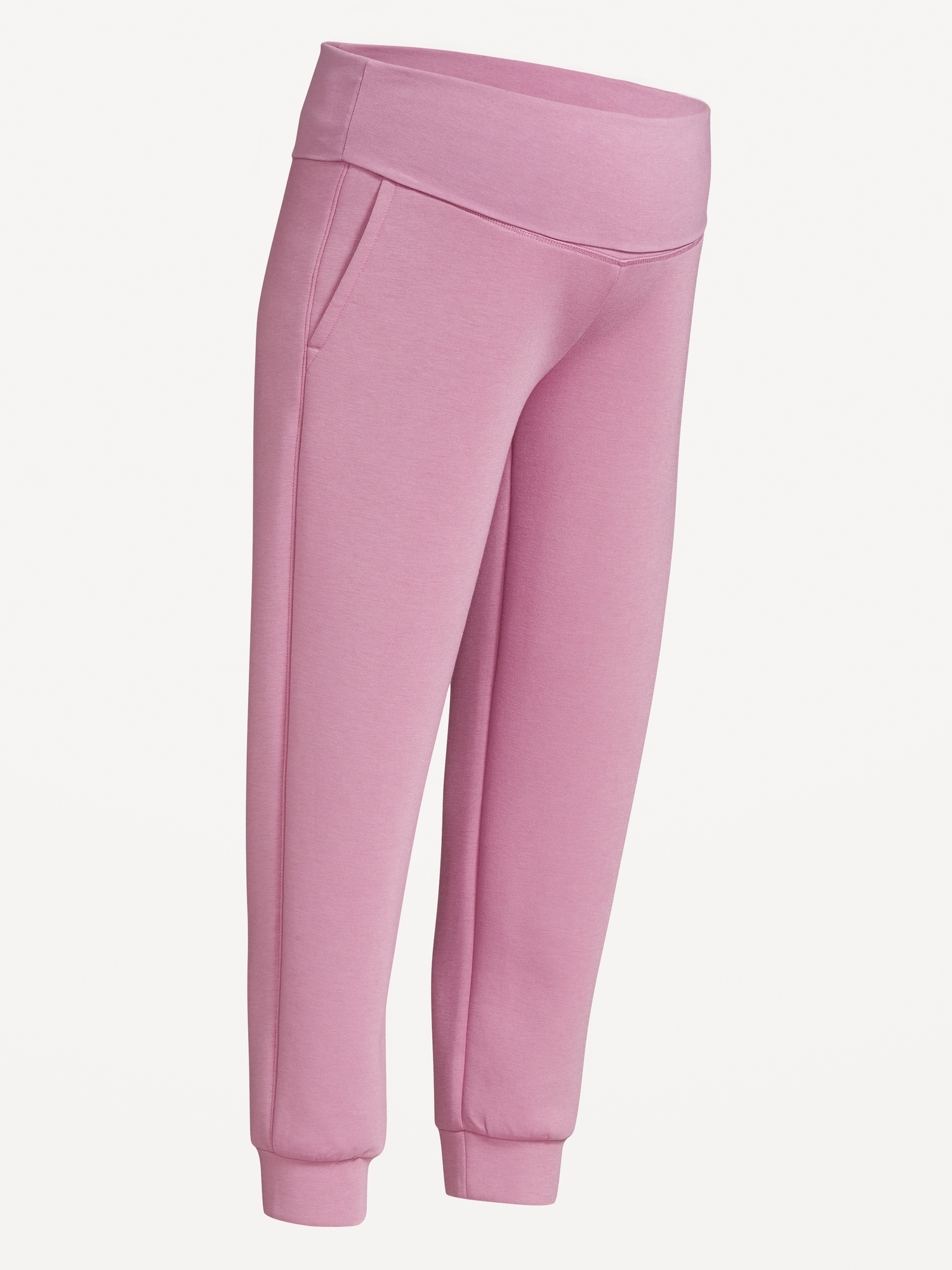 Maternity Bounce Fleece Rollover-Waist Jogger Sweatpants: Featuring Bounce Fleece. A smooth, cooling finish that feels good and looks chic everywhere you go.rollover waistband, diagonal hip pockets, breathable, pull-on style, #826399