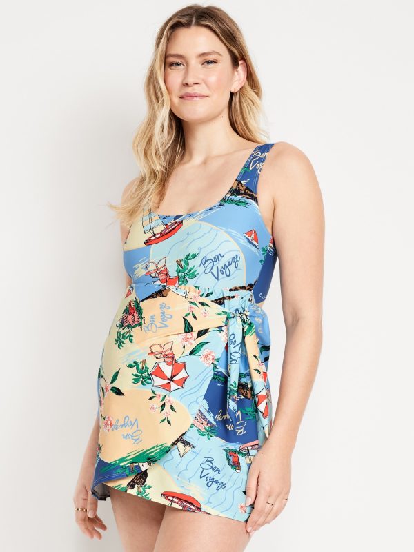 Maternity Classic Wrap Swim Dress: square neck, sleeveless, removable pads, built-in briefs, side-tie, #756110