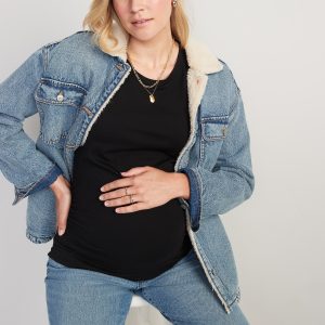 Maternity Crew Neck T-Shirt: rib-knit crew neck, short sleeves, shirred sides for a flexible fit, tag-free label, #817054