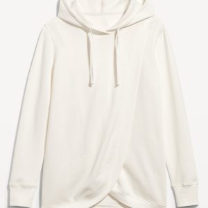 Maternity Cross-Front Nursing Pullover Hoodie: adjustable drawstring hood, long sleeves, rib-knit cuffs, cross front for convenient nursing access, rib-knit front and hem, pullover style, #578188