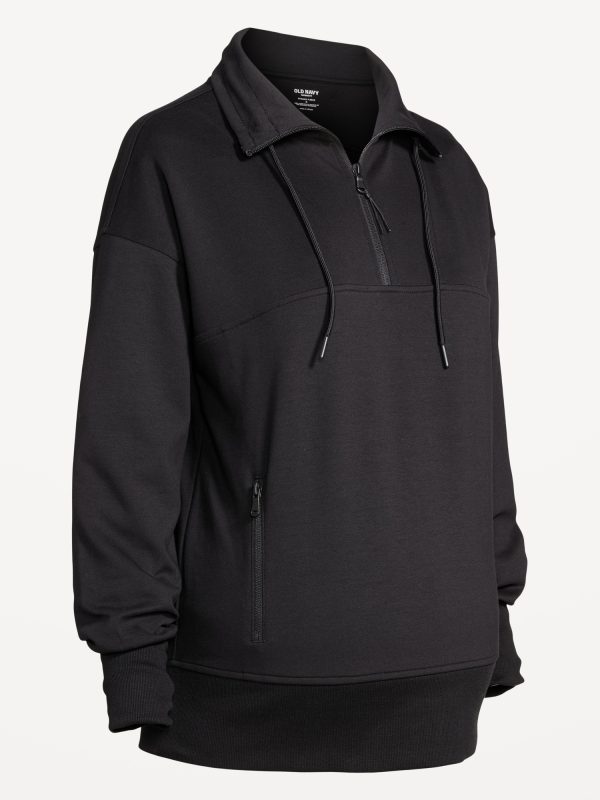 Maternity Dynamic Fleece Half Zip: Featuring Dynamic Fleece. Soft, smooth fleece plus made-to-move stretch.drawstring funnel neck, long sleeves, thumbhole cuffs, half-zip front, zip pockets, rib-knit trim, pullover style, #596853