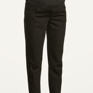 Maternity Front Low-Panel OG Straight Jeans: Our maternity OG Jeans? Think “mom jeans” …if your mom was effortlessly chic. Part ‘90s nostalgia, part new-normal comfort, served straight up with enough roominess for cool comfort. 😎, Maternity front low-panel jeans have a smooth elastic jersey panel in front for support, with a regular waistband in back, just like your fave pair., Faux fly, with scoop and coin pockets at front; Patch pockets at back., Cutoff hem., Durable, medium-wash cotton-denim, with a smidge of stretch for that broken-in fit., Made with 11% polyester and 5% recycled cotton. Less waste in the world 🌎, #759157