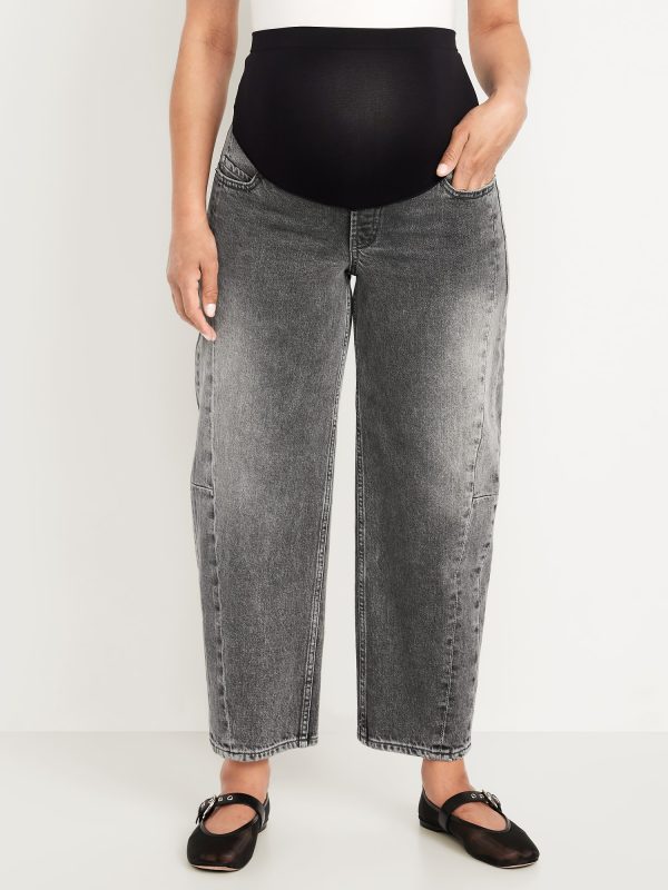 Maternity Full-Panel Baggy Barrel Jeans: The effortless curved shape that’s so hot right now.full panel waistband, faux fly, barrel leg, scoop pockets, back patch pockets, #826440
