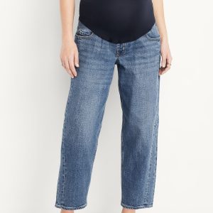 Maternity Full Panel Barrel Ankle Jeans: The effortless curved shape that’s so hot right now.full panel waistband, faux fly, barrel leg, scoop pockets, back patch pockets, #826440