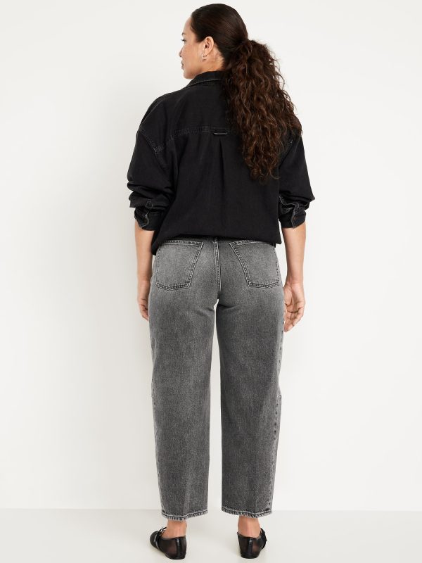 Maternity Full Panel Barrel Jeans: The effortless curved shape that’s so hot right now.full panel waistband, faux fly, barrel leg, scoop pockets, back patch pockets, #826440