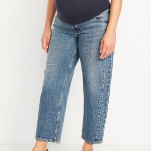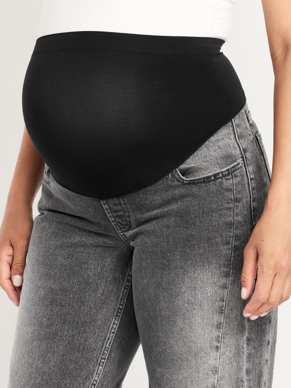 Maternity Full Panel Barrel Jeans: The effortless curved shape that’s so hot right now.full panel waistband, faux fly, barrel leg, scoop pockets, back patch pockets, #826440