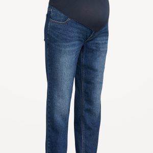 Maternity Full-Panel Boyfriend Jeans: full panel waistband, faux fly, front scoop pockets, back patch pockets, straight leg, #719611