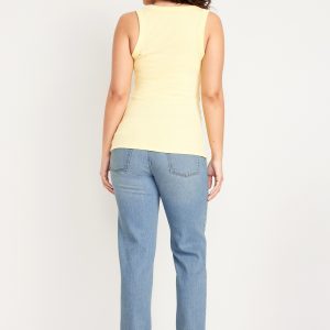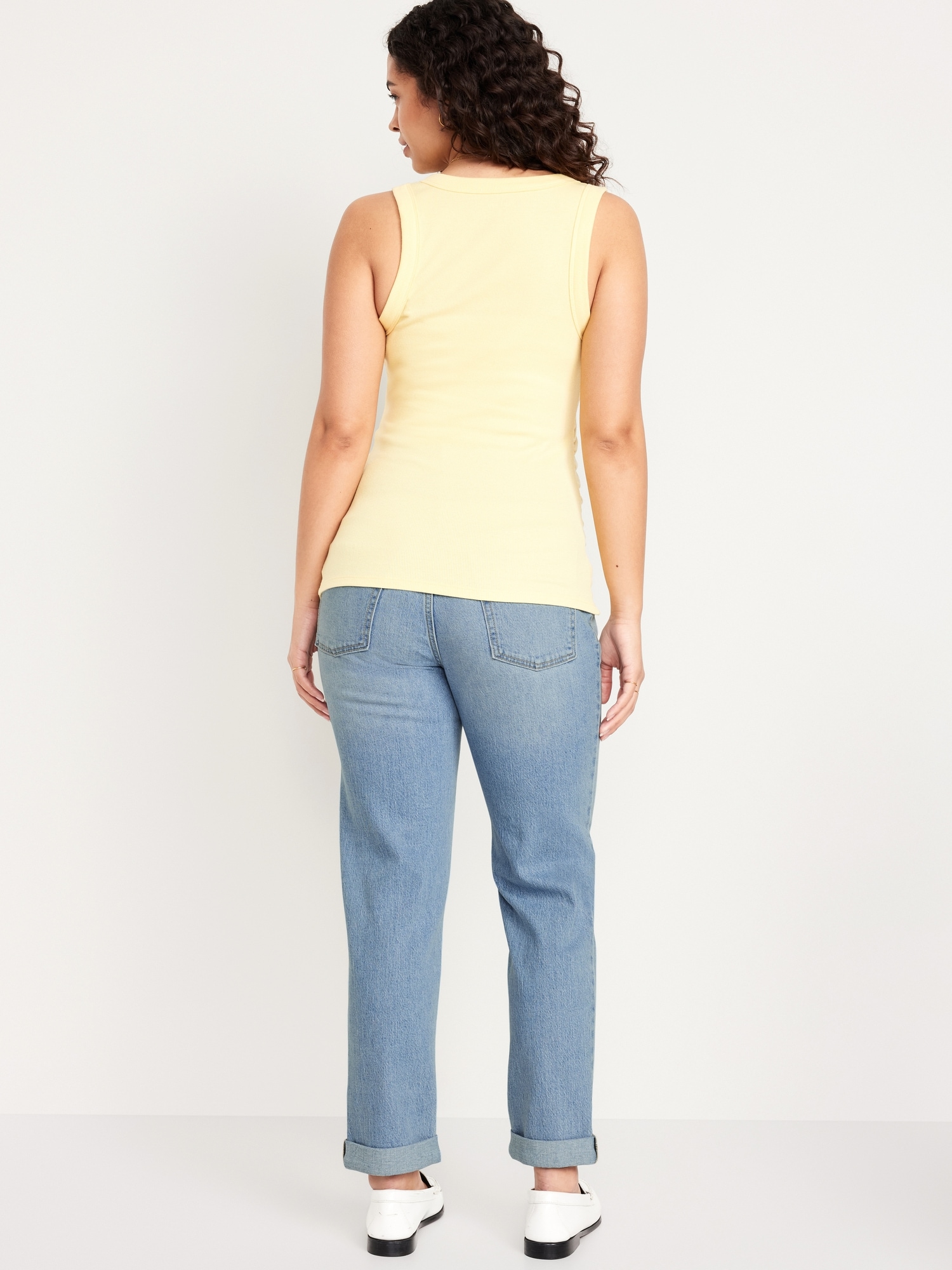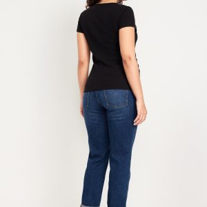 Maternity Full Panel Boyfriend Straight Jeans: full panel waistband, faux fly, front scoop pockets, back patch pockets, straight leg, #719611