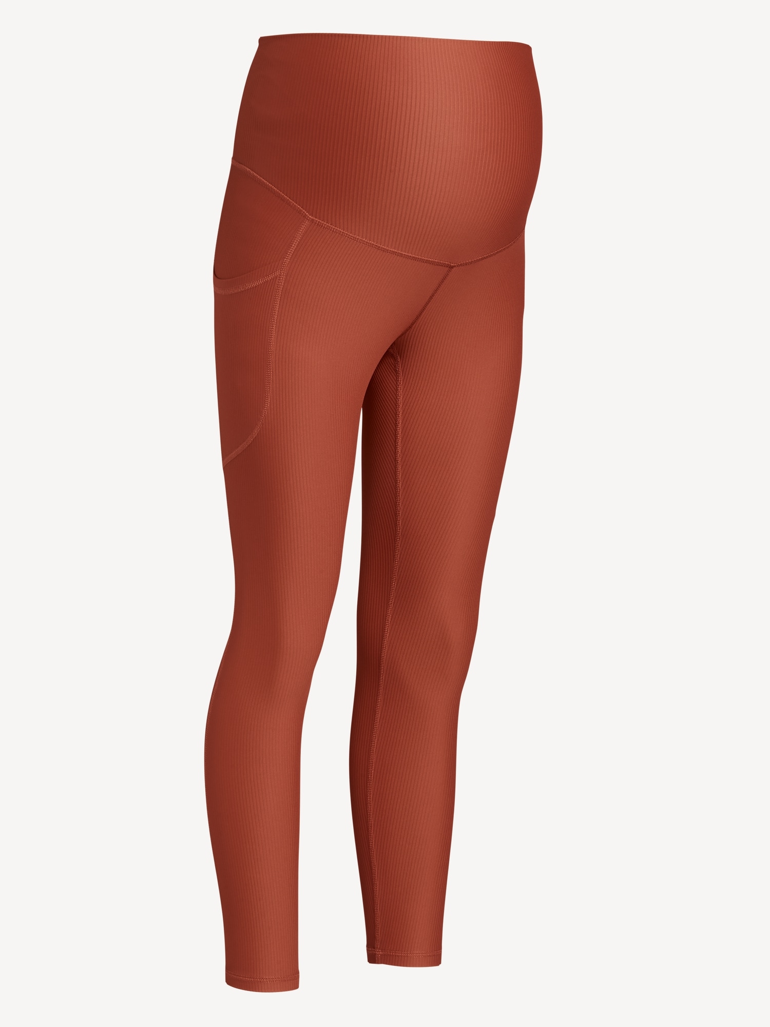 Maternity Full Panel PowerSoft 7/8 Rib Leggings: Featuring PowerSoft, light compression with a peachy-soft feel.full panel stretches over belly, side pockets, go-dry wicks moisture, #871638