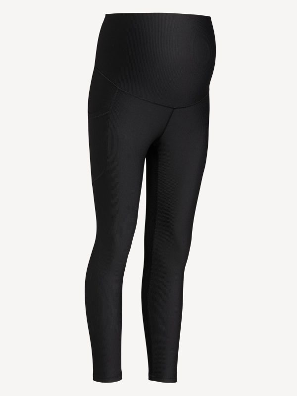 Maternity Full Panel PowerSoft 7/8 Rib Leggings: Featuring PowerSoft, light compression with a peachy-soft feel.full panel stretches over belly, side pockets, go-dry wicks moisture, #871638