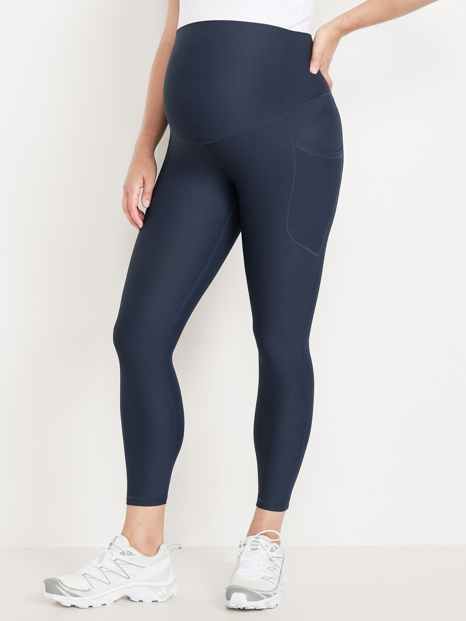 Maternity Full Panel PowerSoft 7/8 Rib Leggings: Featuring PowerSoft, light compression with a peachy-soft feel.full panel stretches over belly, side pockets, go-dry wicks moisture, #871638