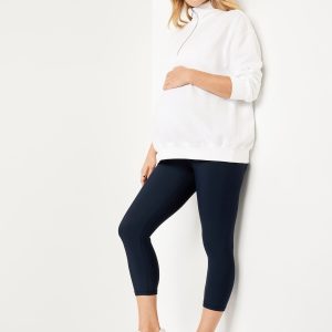 Maternity Full-Panel PowerSoft Crop Leggings: Featuring PowerSoft, light compression with a peachy-soft feel.full panel stretches over belly, side pockets, go-dry wicks moisture, #962148