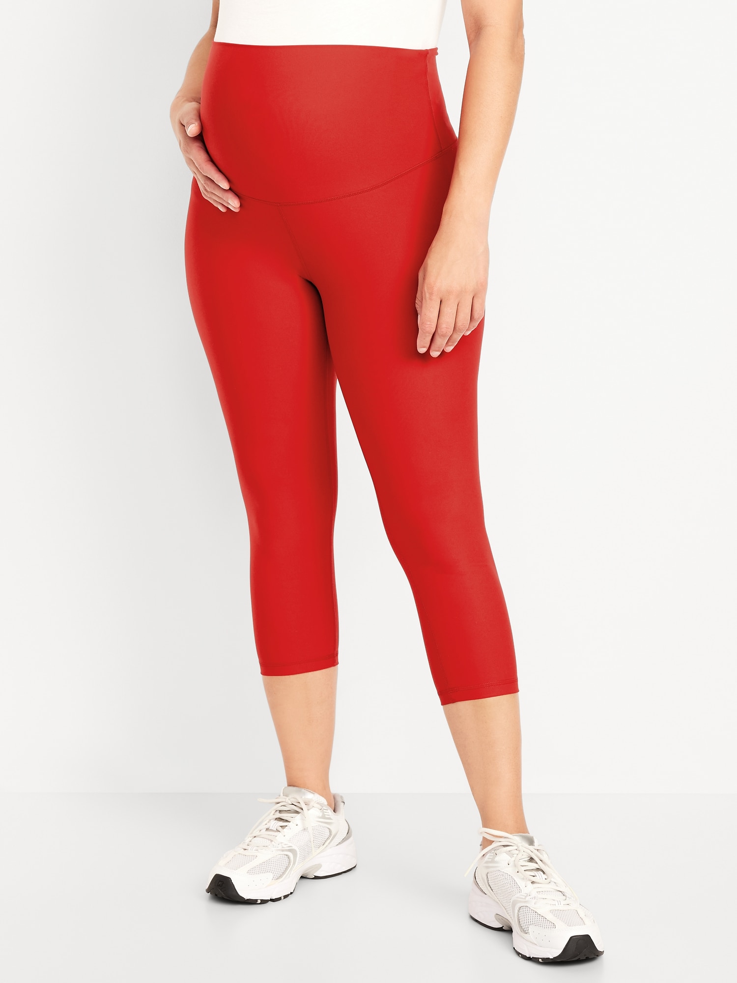 Maternity Full-Panel PowerSoft Crop Leggings: Featuring PowerSoft, light compression with a peachy-soft feel.full panel stretches over belly, side pockets, go-dry wicks moisture, #962148