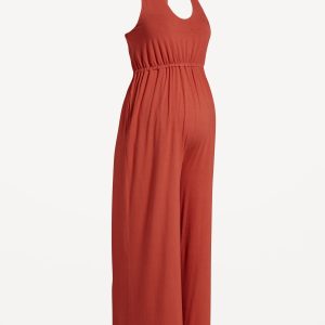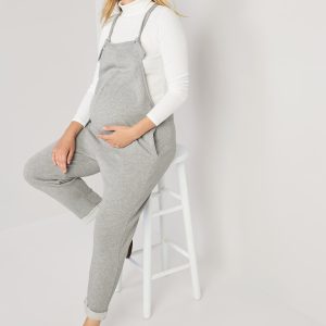 Maternity Knotted-Strap Fleece Overalls: perfect for baby shower, square neck, knotted shoulder straps, on-seam pockets, rolled cuffs, #758300