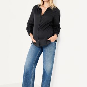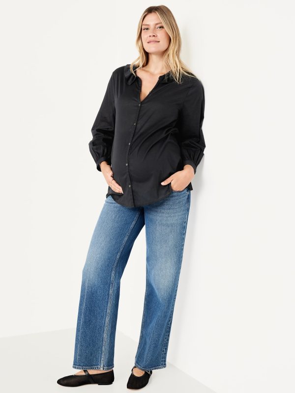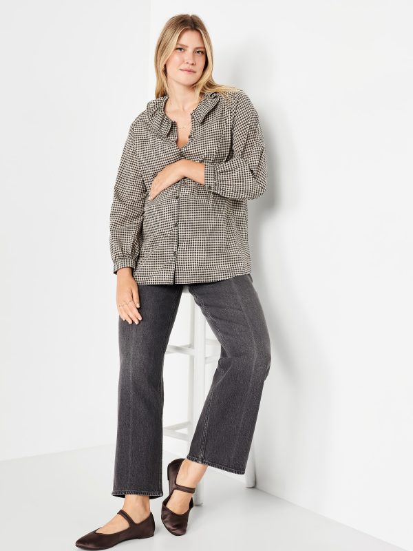 Maternity Long Sleeve Button-Down Ruffle Shirt