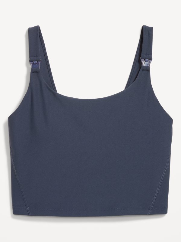 Maternity PowerSoft Nursing Sports Bra: Featuring PowerSoft. A stretchy, peachy-smooth fabric with light compression.scoop neck, adjustable shoulder straps, detachable clips for convenient nursing, cross-cross straps at back, removable pads, go-dry wicks moisture, #434639