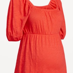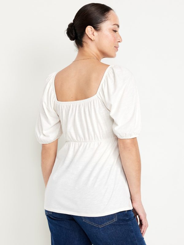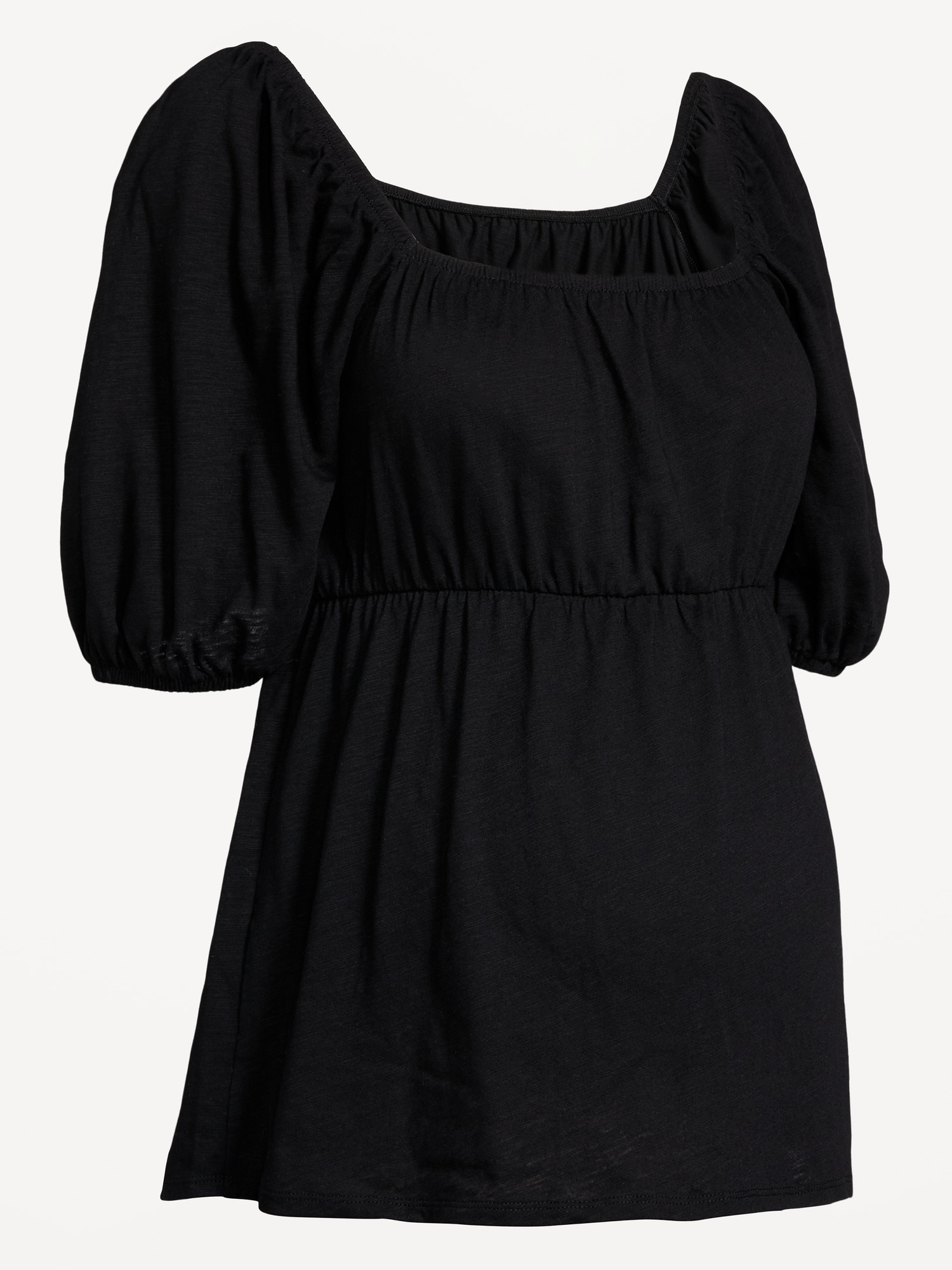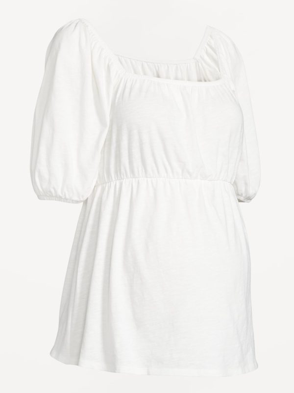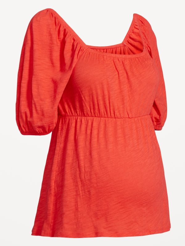 Maternity Puff Sleeve Top: square neck, empire waist, elastic cuffs, flared hem, #771745