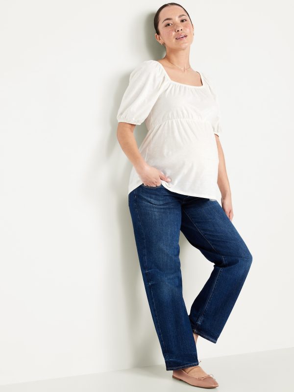Maternity Puff Sleeve Top: square neck, empire waist, elastic cuffs, flared hem, #771745