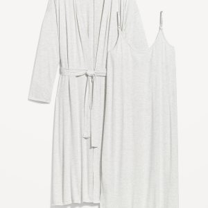 Maternity Robe and Nursing Nightgown Set: includes bathrobe and matching cami nightgown, robe has long sleeves, removeable tie belt and on-seam pockets, nightgown has detachable clips at spaghetti straps, built-in shelf bra for convenient nursing, #465767