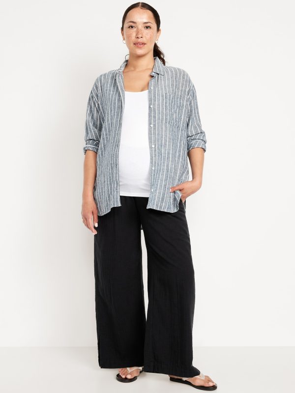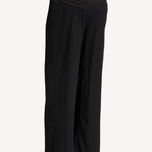 Maternity Rollover Waist Crinkle Gauze Wide-Leg Pants