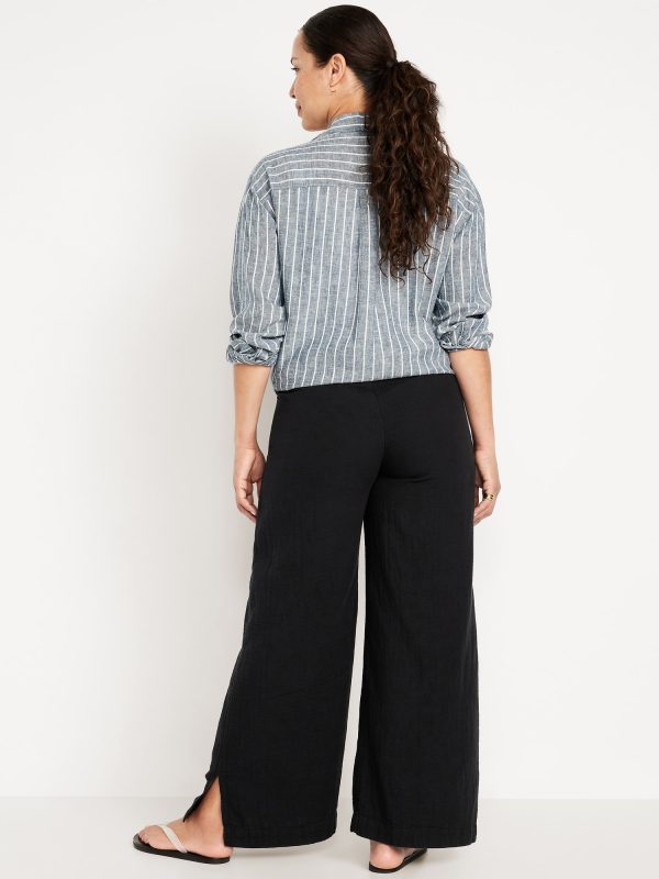 Maternity Rollover Waist Crinkle Gauze Wide-Leg Pants: A light, rippled fabric that’s begging to be beachside.rollover waist, pull-on style, on-seam hip pockets, wide leg, #771711