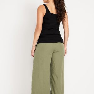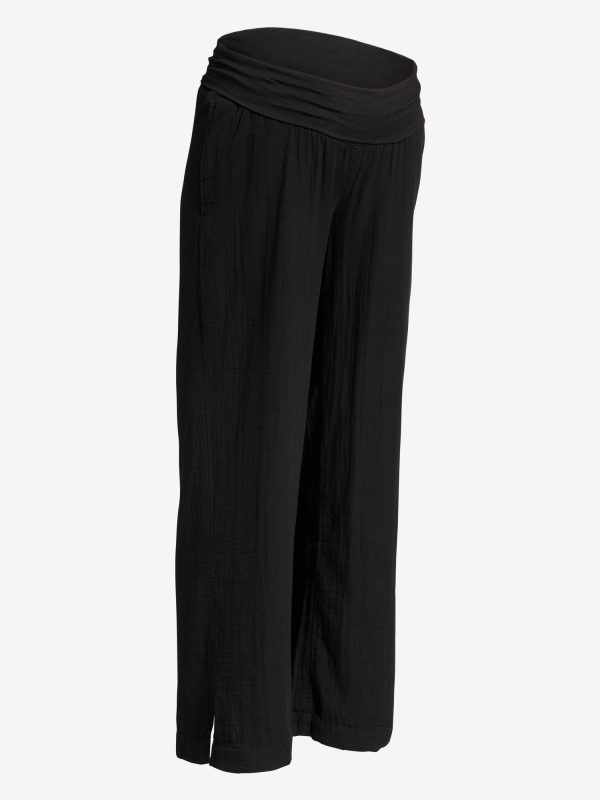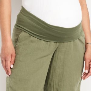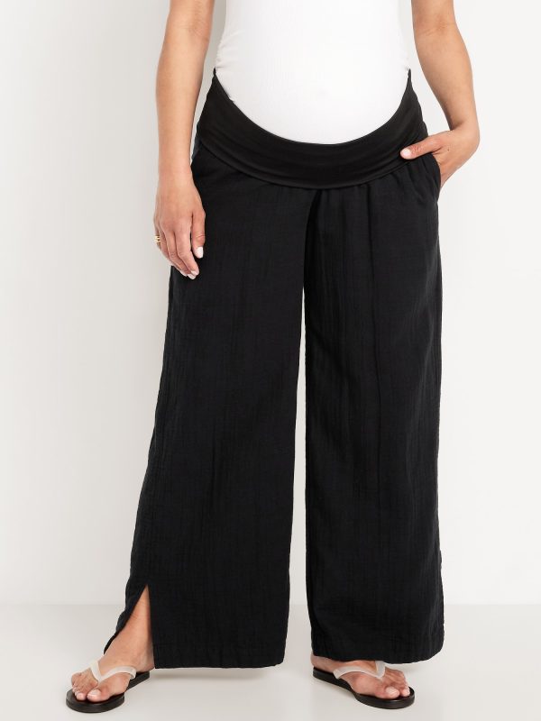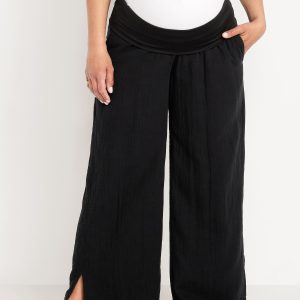 Maternity Rollover Waist Crinkle Gauze Wide-Leg Pants