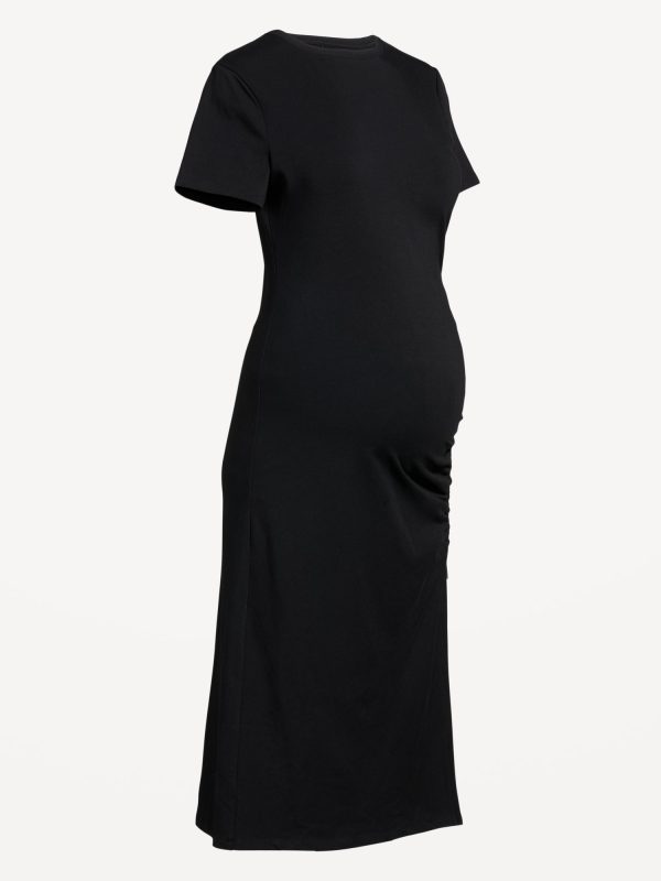 Maternity Short-Sleeve Ruched Dress: crew neck, short sleeves, shirred side for a flexible fit, slit at side, #771559