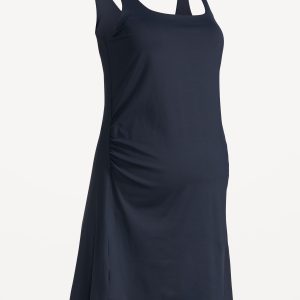 Maternity Sleeveless PowerSoft Mini Skort Dress: Power up in our maternity PowerSoft skort dress — light compression fabric meets a ridiculously smooth, peachy-soft feel., Scoop neck, with wide shoulder straps., Powermesh-lined bodice, with built-in shelf bra and removable shaped cups., Flat-lock seams through front and back prevent chafing., Side slits at mini-length hem., Built-in briefs are gusseted for ease of movement., Go-Dry moisture-wicking technology keeps you dry & comfortable., Four-way super stretch for ultimate movement., Smooth, breathable light compression fabric sculpts your shape while letting you vent., #881820