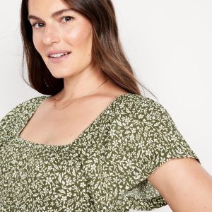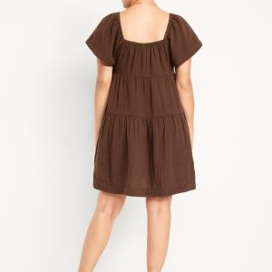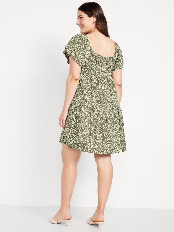 Maternity Square-Neck Mini Dress: square neck, short flutter sleeves, tiered shirred seams, all-over floral print, #826484