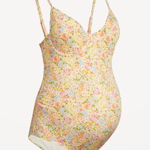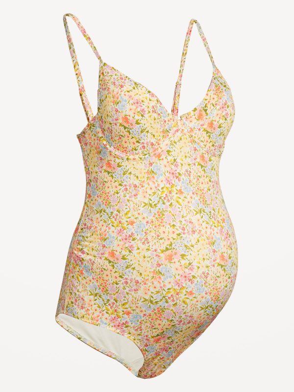 Maternity Textured One-Piece Balconette Swimsuit: adjustable spaghetti straps, underwire support, removable pads, elastic leg openings, #719528