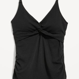 Maternity Twist-Front Cutout Nursing Tankini Swim Top